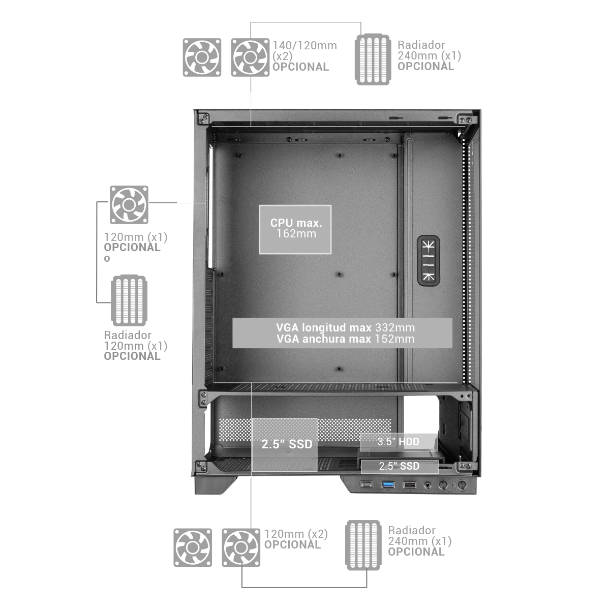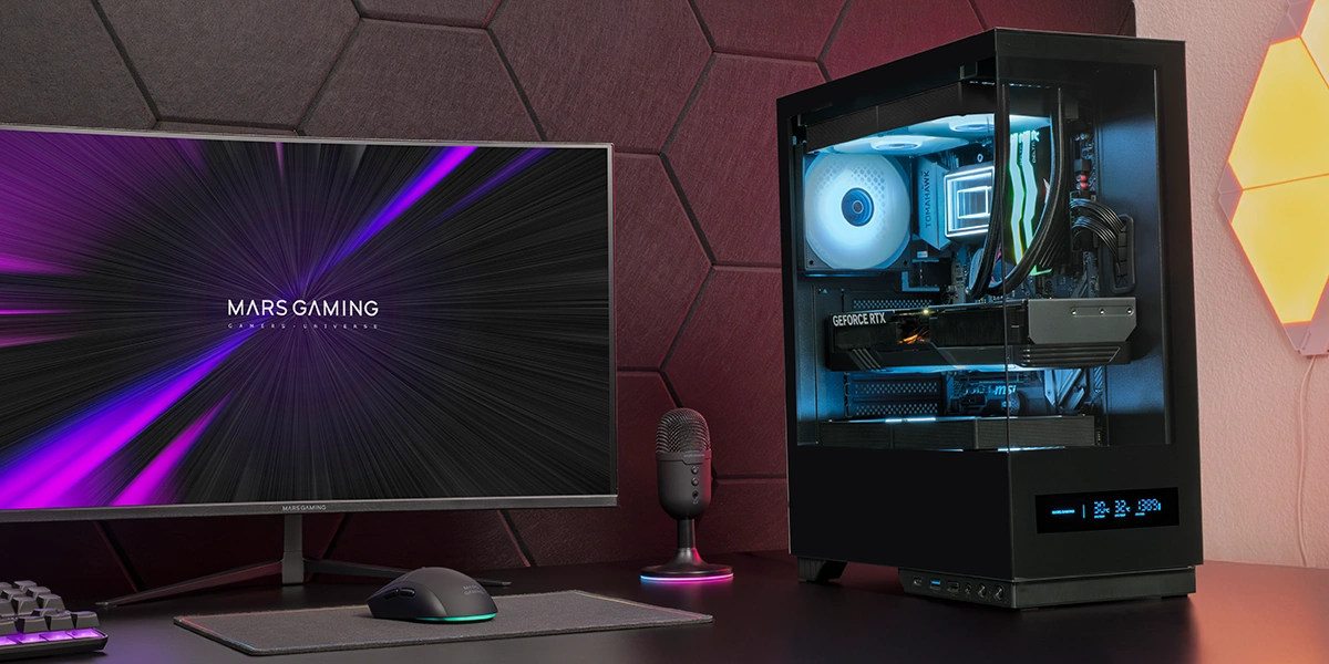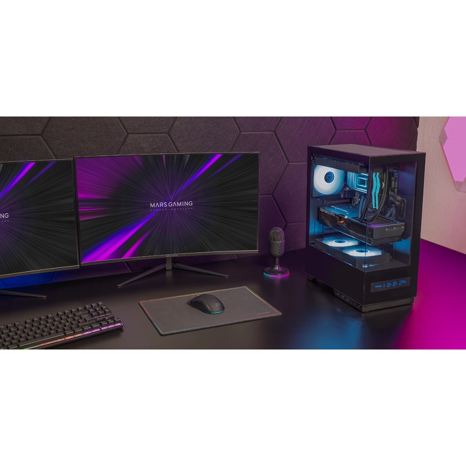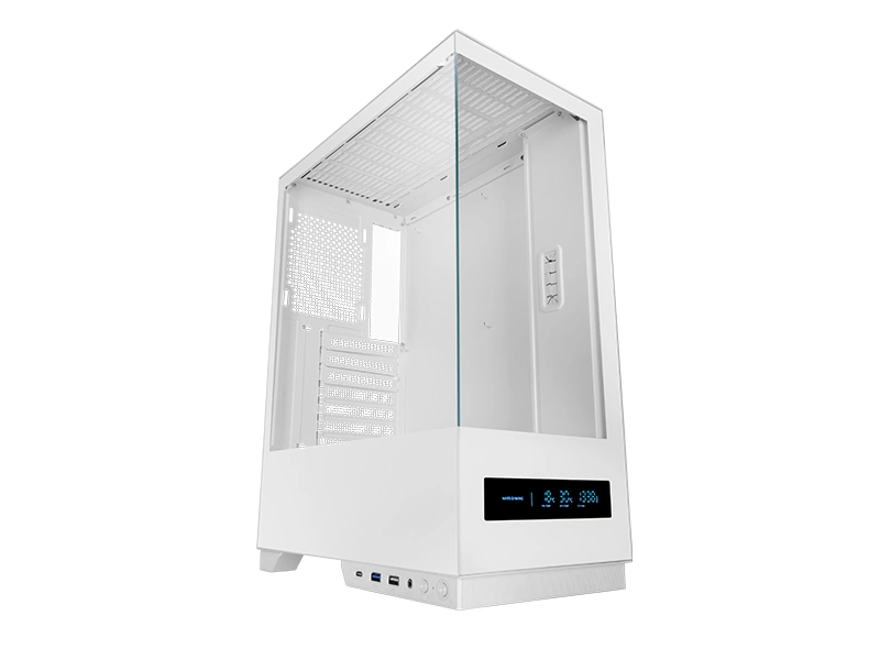 - Podwójne hartowane szkło: front i bok, zapewniające widok sprzętu w 360°