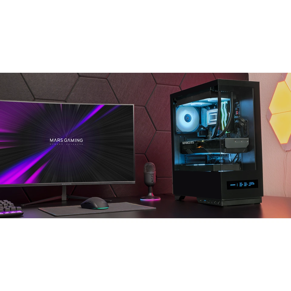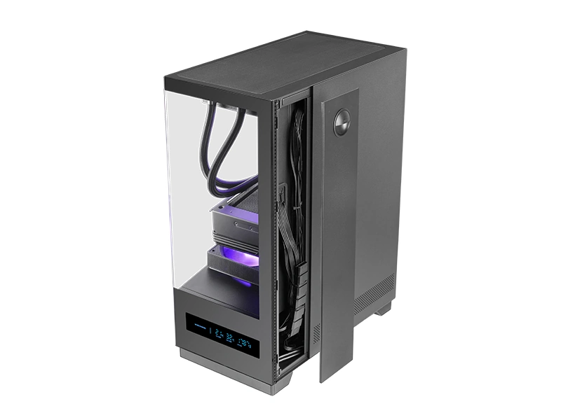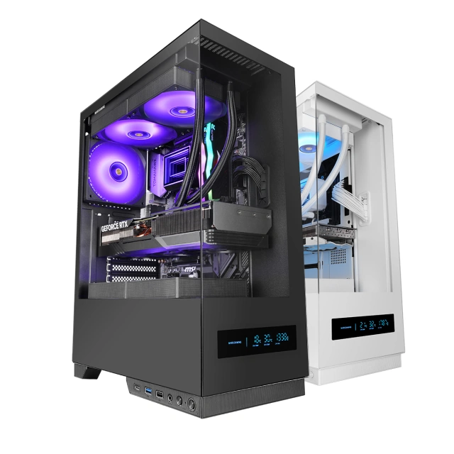 - Frontowy wyświetlacz LCD pokazujący w czasie rzeczywistym temperatury CPU/GPU oraz obroty wentylatorów