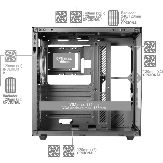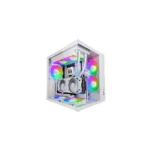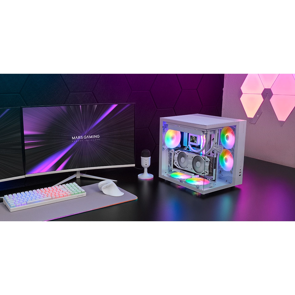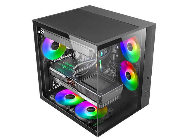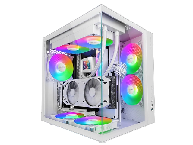 MCV-One to kompaktowa obudowa ATX o dużej pojemności wewnętrznej, łącząca awangardowy design, wysoką wydajność termiczną oraz elegancką estetykę, aby wynieść Twój zestaw na wyższy poziom. Dzięki podwójnemu, jednolitemu panelowi z hartowanego szkła, zintegrowanemu wentylatorowi FRGB 120 mm, konstrukcji z podwójną komorą oraz kompatybilności z chłodzeniem cieczą do 240 mm, obudowa zapewnia wszystko, co niezbędne do montażu wydajnego i efektownego sprzętu w kompaktowym formacie.