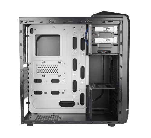 Ze względu na swoją obszerną budowę (ATX), obudowa bez problemu pomieści najwyższej klasy karty graficzne nawet te o wymiarach do 380mm. Pojemne wnętrze pomieści również radiator o wymiarach 160mm.
