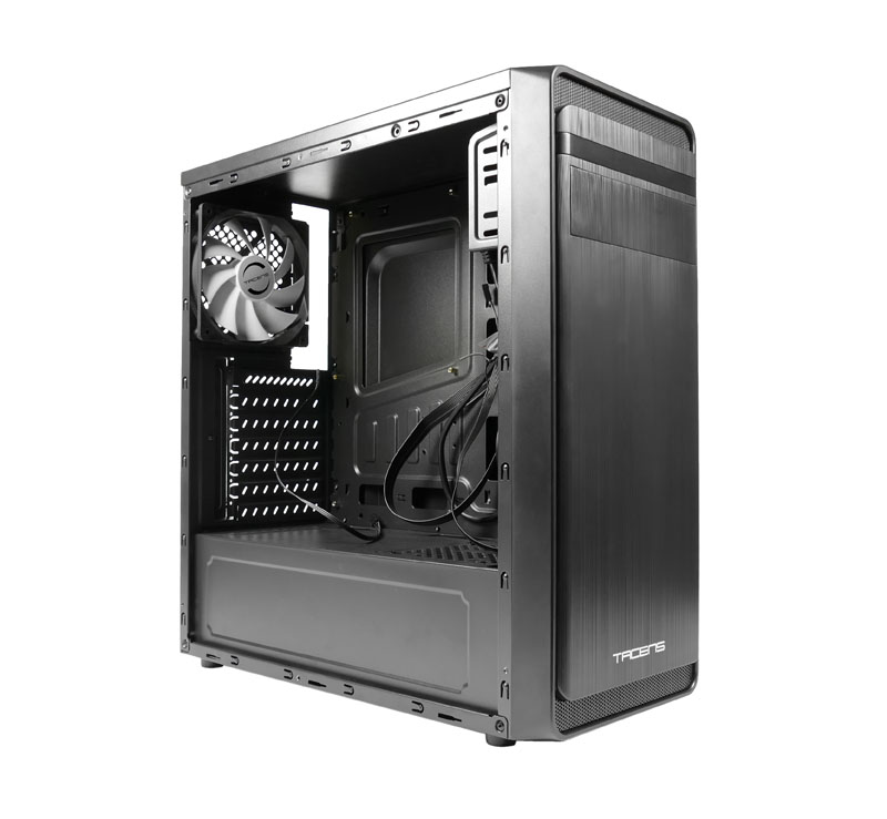 Połączenie wydajnych rozwiązań objawia się tutaj poprzez zainstalowanie dwóch systemów chłodzenia. Dzięki wydajnym oraz ultra cichym wentylatorom Tacens Fluxus 120mm obudowa osiąga wydajność nieporównywalnie wysoką. W obudowie istnieje możliwość zamontowania, aż 5 takich wentylatorów co powinno pozwolić Ci zbudować jednostkę, którą będziesz mógł wykorzystać do najbardziej zaawansowanych gier.